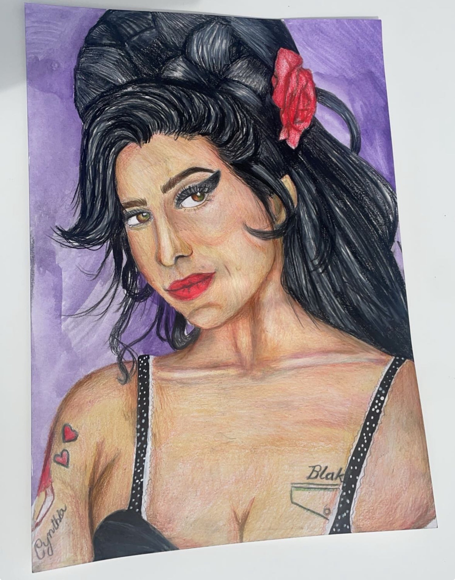 A vibrant portrait of Amy Winehouse the Soul of Music in Coloured Pencils!