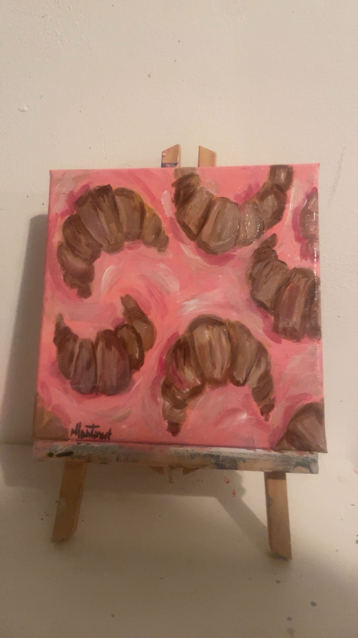 This 20cm x 20cm primed canvas features mouth-watering croissants on a soft and vibrant pink background. Perfect for adding a touch of French elegance to your decor. Bon appétit!